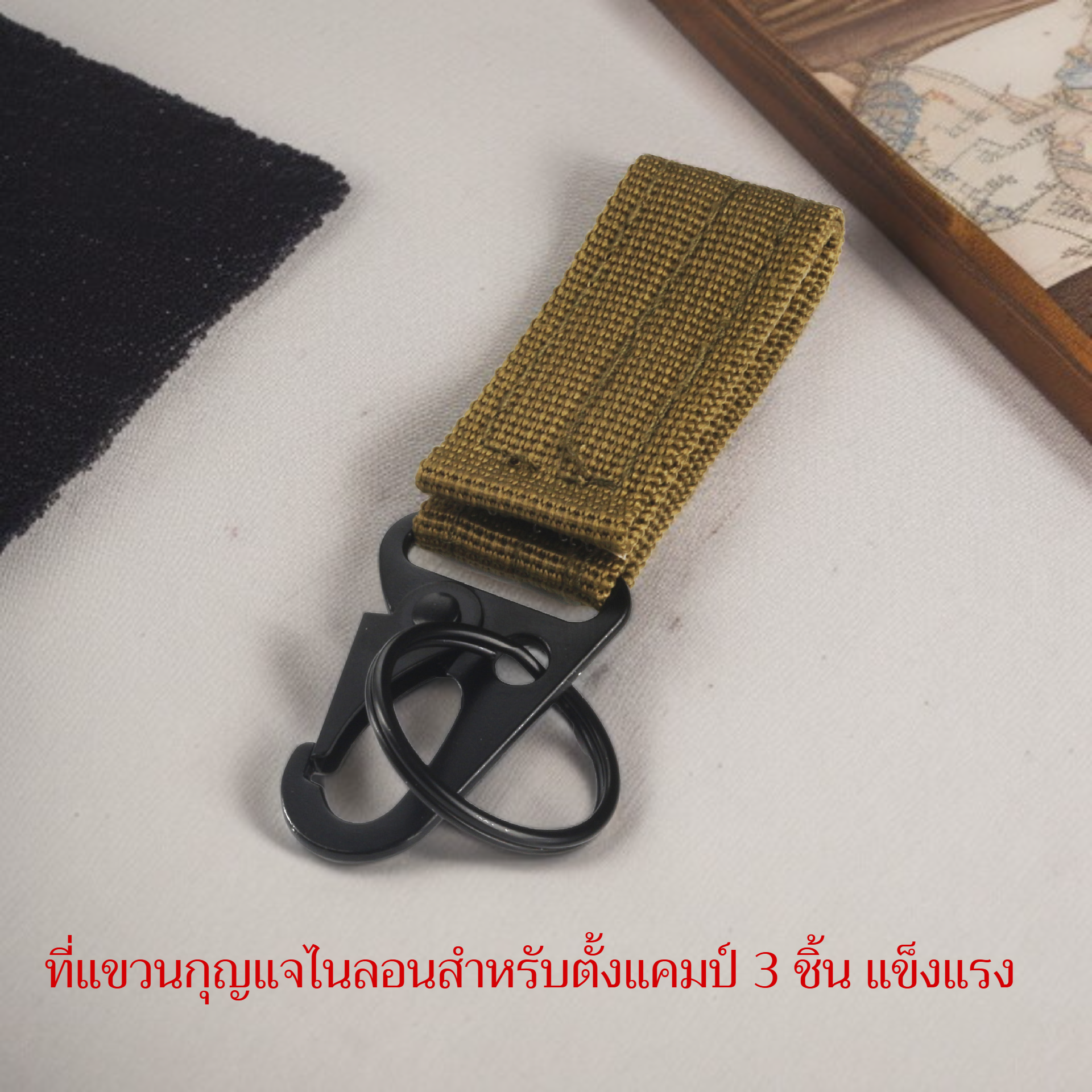 ที่แขวนกุญแจไนลอนสำหรับตั้งแคมป์ 3 ชิ้น พร้อมตะขอคาราบิเนอร์